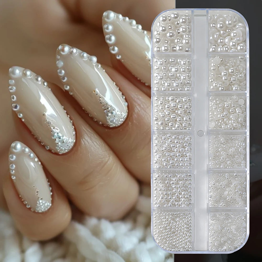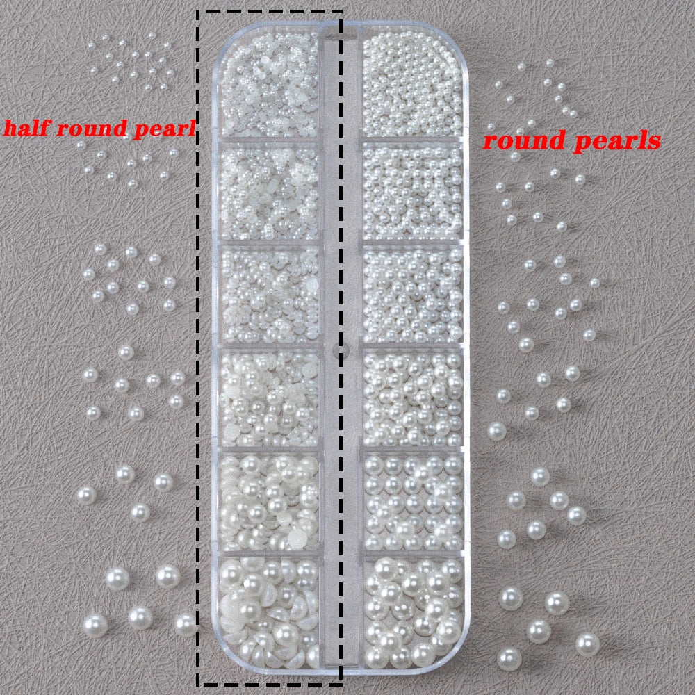 Round White Pearls Nail Beads Nail Charms 12 grids (0.15-0.5cm) - Caviar Beads Nail Art Deco