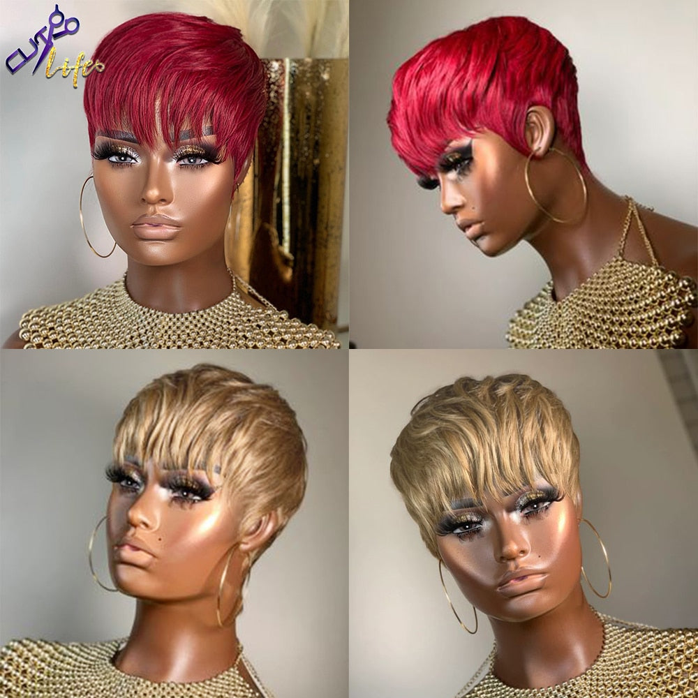 Short Pixie Cut and Mullet Wigs Full Machine Made Wig With Bangs