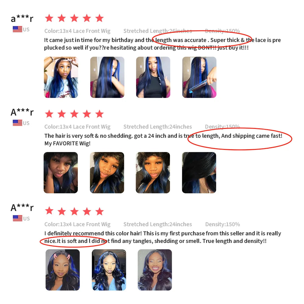 Experience the sleek and chic Straight Highlight Black With Blue Lace Frontal Wigs Human Hair Wigs - perfect for Black women looking for a Brazilian hair full lace wig. Made with Remy hair and a Swiss lace base, this long wig (26+ inches) is full of luxurious texture. Transform your look with Exceed's lace front wigs, only providing you quality with every purchase. Dyed in any color, the transparent lace adds a touch of sophistication and versatility. Join the trend and get your very own Straight Highlight wig today!