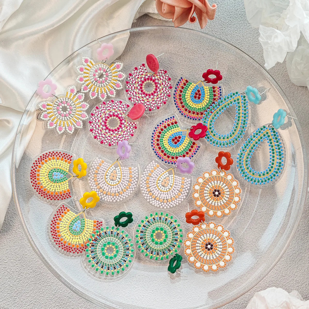 Experience the ultimate boho style with our stunning Summer Popular Boho Drop Earrings for Women! Featuring charming colorful polka dot acrylic pendants in a trendy geometric design, these earrings add a touch of bohemian charm to any outfit. Made with high-quality Tibetan silver and acrylic materials, these earrings are a must-have for any fashion-forward individual. Get ready to make a statement and stand out in our 2024 Trend Geometry Jewelry collection. Perfect for a bohemian or vintage look, these earrings are a must-have for this summer season!