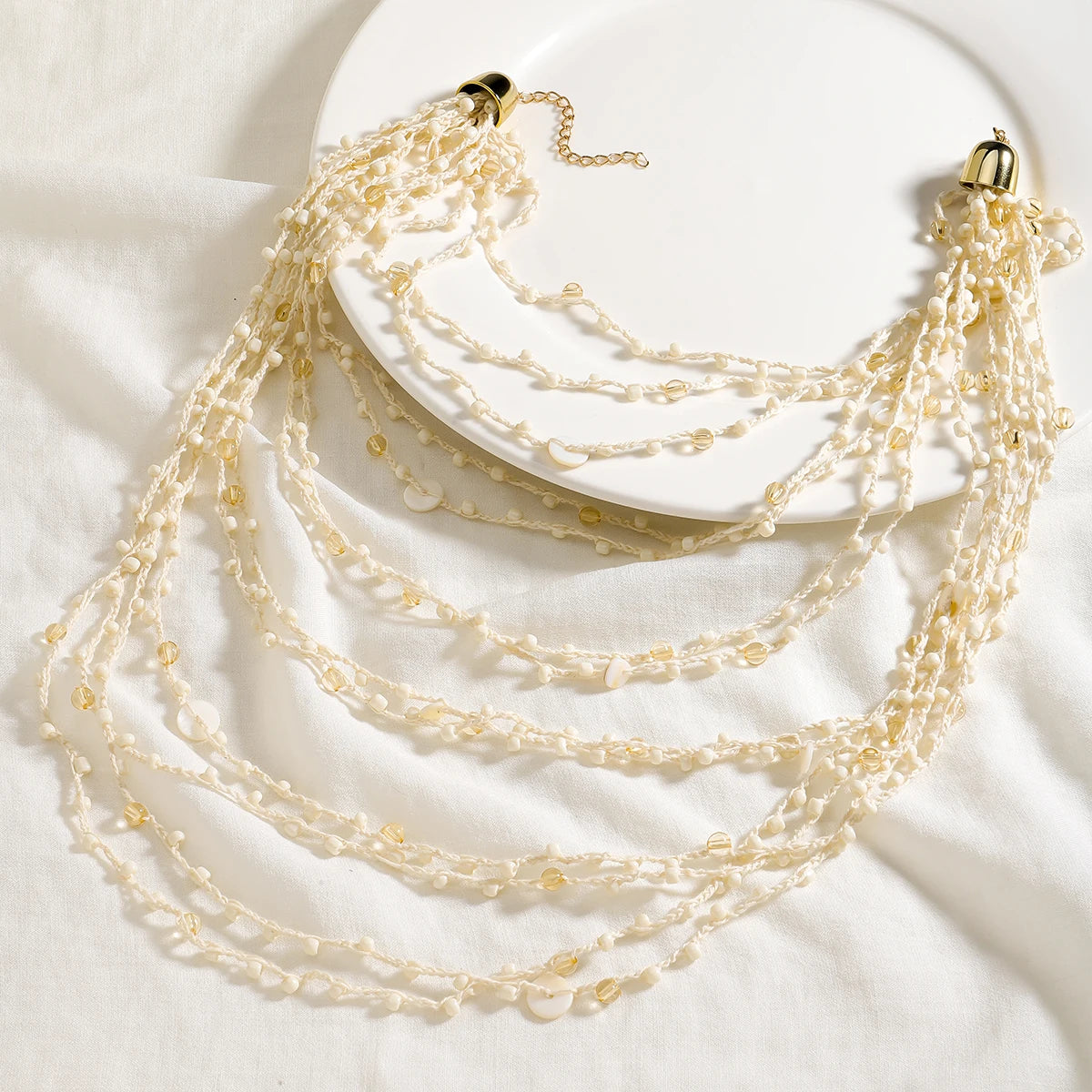 Experience the exquisite beauty of Vedawas Bohemian Handmade Beaded Rhinestones Multilayer Chain, the perfect addition to your wardrobe for those elegant vacation parties and banquets. Made with high-quality materials and a trendy design, this fashion accessory is sure to make a statement and elevate your style. Indulge in the ultimate bohemian luxury and add this stunning piece to your collection today!