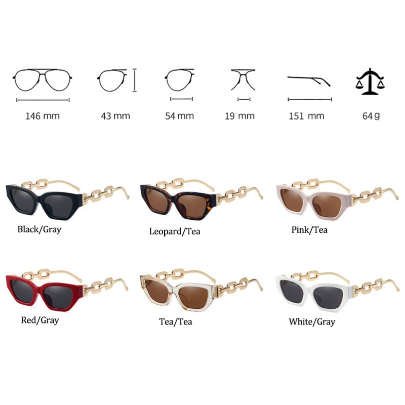 Enchant and captivate with these Vintage Cat Eye shades featuring a delicate gold metal chain. Perfect for adding a touch of elegance to your eyewear collection. Make a stylish statement with this must-have accessory!