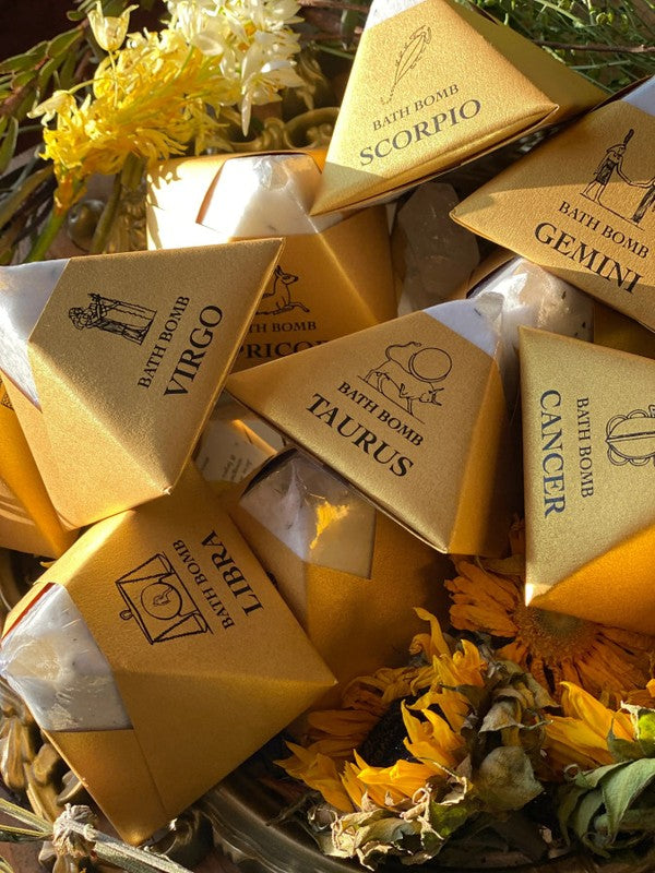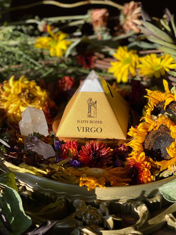 Virgo Bath Bomb VIRGO - Earth Sign August 23-September 22 You possess a natural intuition and a strong sense of order. Your desire to connect with others and your curiosity fuel your kind spirit. Infused with Copal and Patchouli, the organic shea butter, coconut oil, and other high-quality ingredients create a luxurious bathing experience. Handcrafted in the United States, this bath bomb contains a crystal that has been charged under the full moon, adding a touch of magic to your self-care routine.