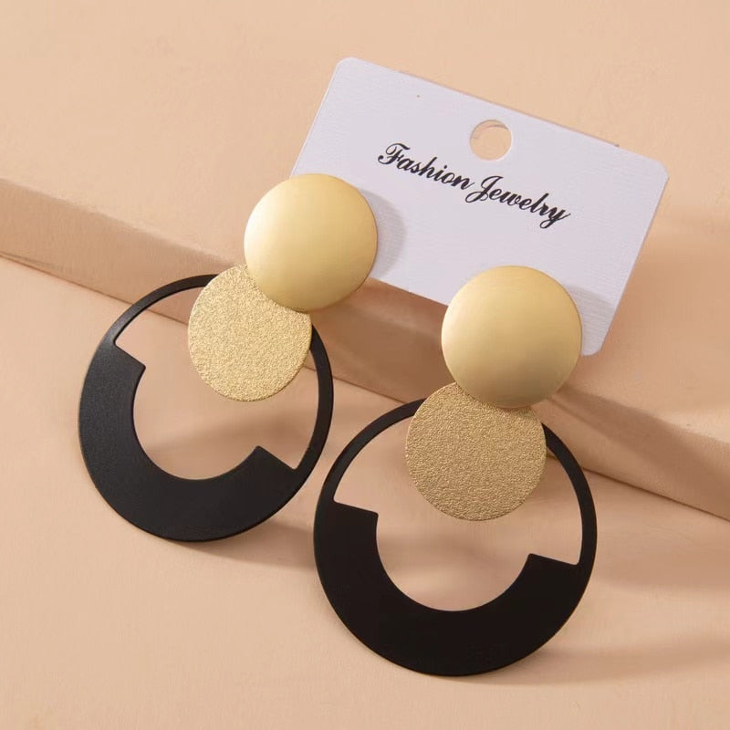 These elegant Voikukka Jewelry Geometric Pendant Hollow Earrings will make you stand out with their timeless, classic design and striking black gold color. Feel confident and stylish with these exquisite earrings. On-trend and luxurious - the perfect fashion statement. Get yours now!