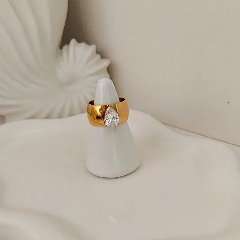 Experience the elegance and durability of Waterdrop's cz stone wide band rings. Crafted with high-quality stainless steel and adorned with sparkling cz stones, these rings are a must-have for any jewelry lover. Available in a variety of sizes and plated in 18k gold, they are both stylish and waterproof. Perfect for women who appreciate sophisticated, minimalist designs. Discover the perfect fit and add a touch of glamour to any outfit with Waterdrop's wide band rings.